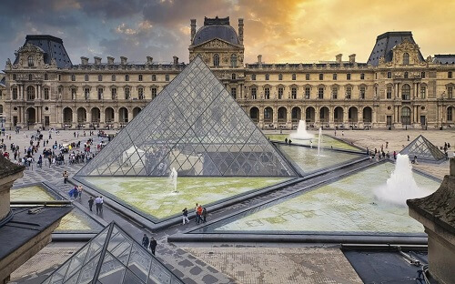 Gå in i museet genom dess berömda pyramid med förbokad biljett